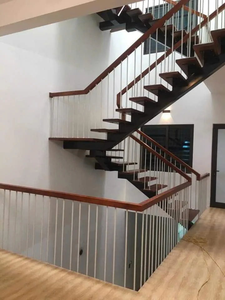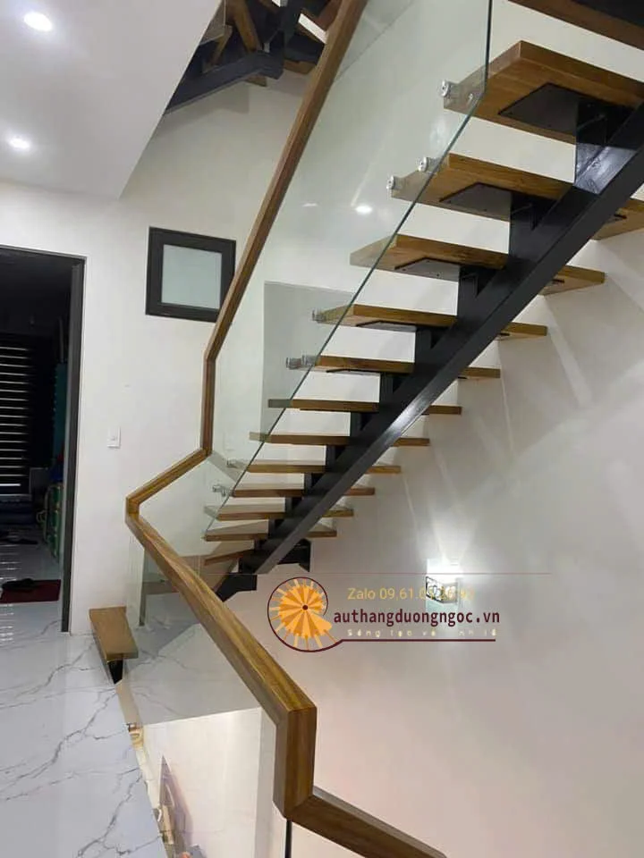 Cầu thang xương cá là lựa chọn lý tưởng cho những ai yêu thích phong cách mạnh mẽ, hiện đại nhưng vẫn có chút nghệ thuật tinh tế. Với khung thép hộp sơn epoxy chắc chắn, mặt bậc gỗ Lim Nam Phi bền đẹp, lan can kính kết hợp con tiện sắt nghệ thuật cùng tay vịn gỗ sang trọng – mẫu cầu thang này không chỉ bền bỉ mà còn cực kỳ ấn tượng.