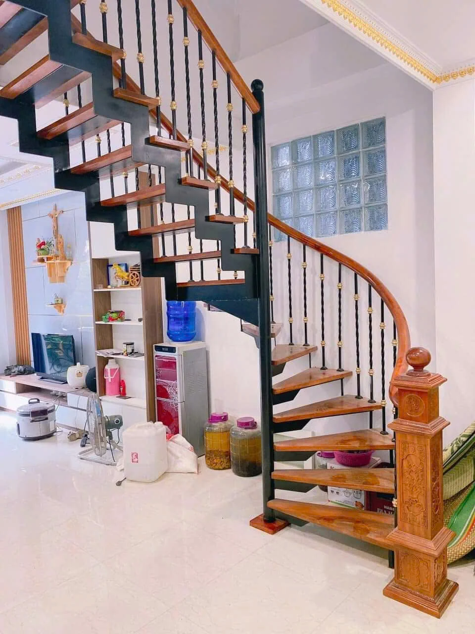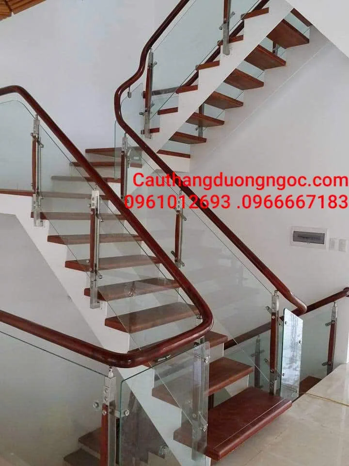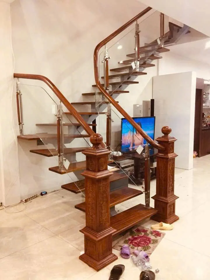 Phần tay vịn là nơi người sử dụng tiếp xúc nhiều nhất, nên luôn được làm bằng gỗ tự nhiên. Tay vịn gỗ mang lại cảm giác êm ái, dễ chịu khi chạm vào, đặc biệt trong những ngày lạnh. Ngoài ra, nó còn giúp tổng thể cầu thang hài hòa hơn – kết nối giữa chất liệu cứng (thép, kính, sắt) với chất liệu mềm mại, gần gũi như gỗ.