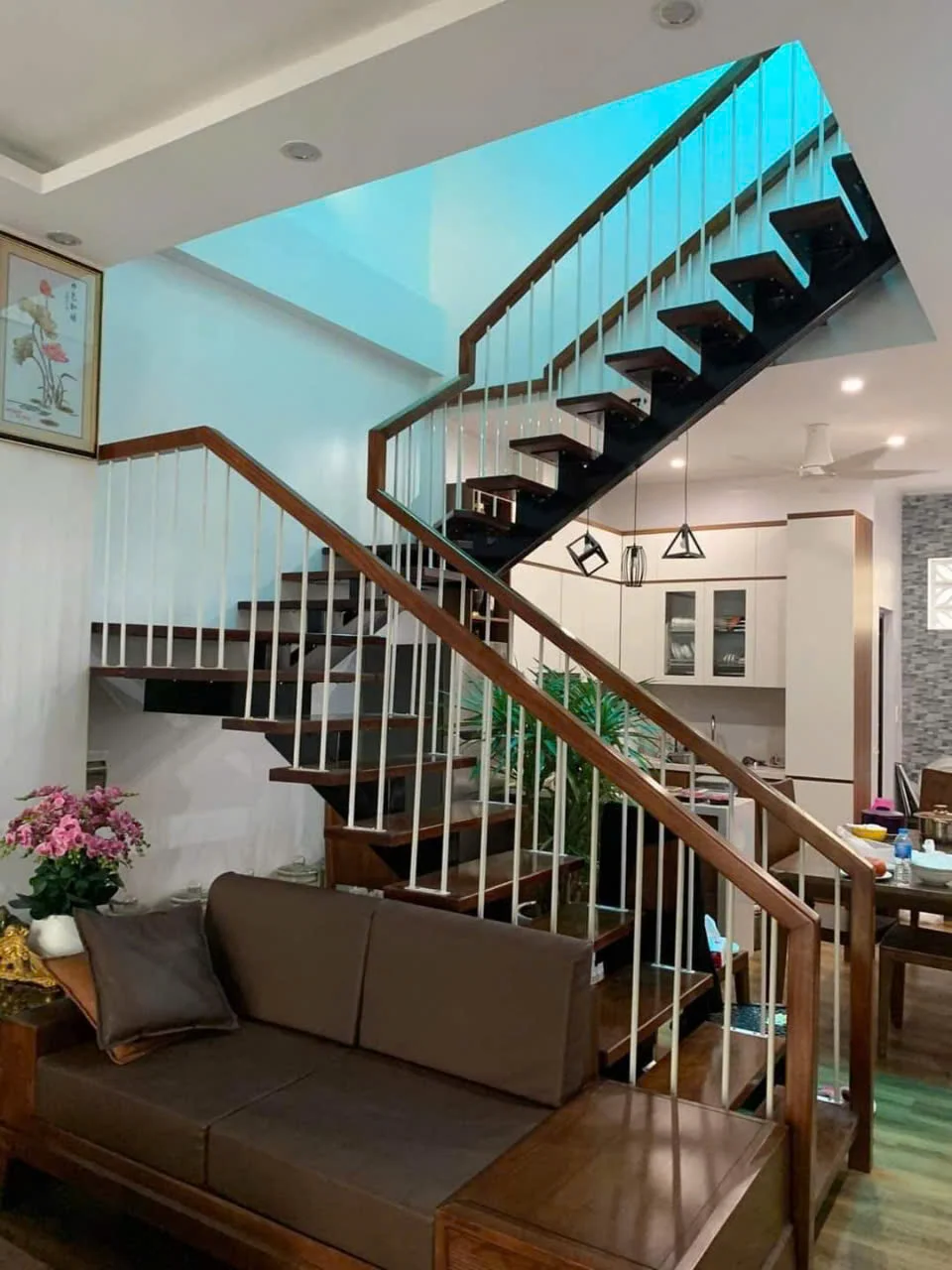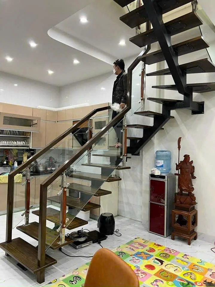 Thiết kế xương cá giúp cầu thang trông nhẹ nhàng và gọn gàng hơn nhiều so với kiểu cầu thang truyền thống. Cấu trúc mở không che khuất tầm nhìn, tạo cảm giác thoáng đãng, rất phù hợp cho nhà phố, nhà ống hoặc không gian có diện tích hạn chế. Không chỉ đẹp mà còn giúp tối ưu diện tích sử dụng trong nhà.